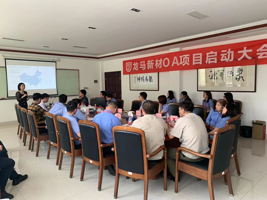 2021年4月12日,在總部三樓會議室隆重舉行龍馬新材OA項目啟動大會,公司高層領導、各部門長、業務骨干和上海泛微項目組共20多人參加本次會議。